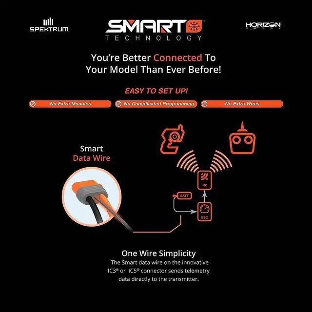 Their verdict? Smart technology is both simpler and superior! This ESC comes bundled with a Spektrum Firma 2050Kv Brushless Motor capable of handling everything this ESC can put out that is a perfect to get you driving with Spektrum Smart technology. "