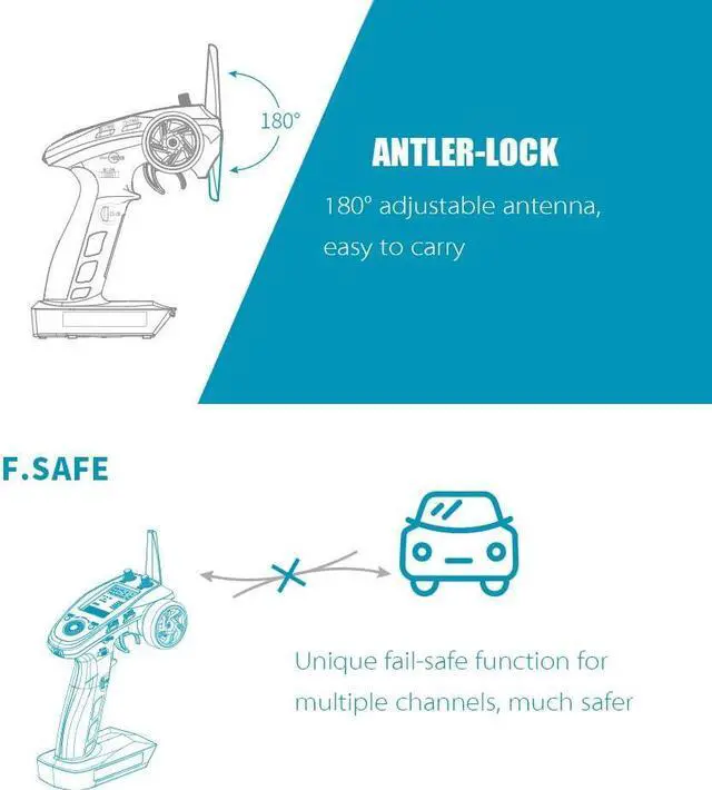 This product uses the 2.4GH z Second Generation AFHDS 2A protocol. The FS-GT5 transmitter and FS-BS6 receiver constatute a 6 channel gyro stabilised system compatible model cars, boats and other models.