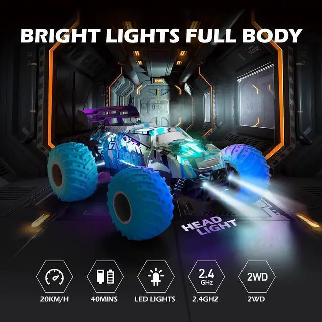 Fun Night Play with LED Lights: You will be amazed by the LED lights on the car body and the two bright headlight light, which look gorgeous at night and make it visible when playing at night.
