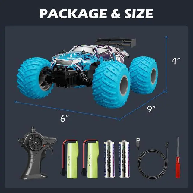 Play: Get everything you need in the package, including two of AA batteries for the remote and rechargeable batteries for the car; besides, the screwdriver to open battery cover is also included. Once you install batteries and turn them on, they will get paired automatically. Start your race in one minute!