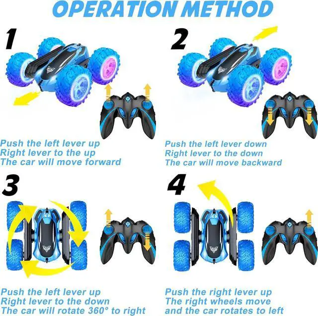 LED Headlight Racing Car - Easy to control the car, it spins, flips, goes backward, forward, turn left, turn right, even the car hit the wall, it will flip. Suitable for competitions on all kinds of ground, such as highway, lawn, snow, rock, sand, etc.
