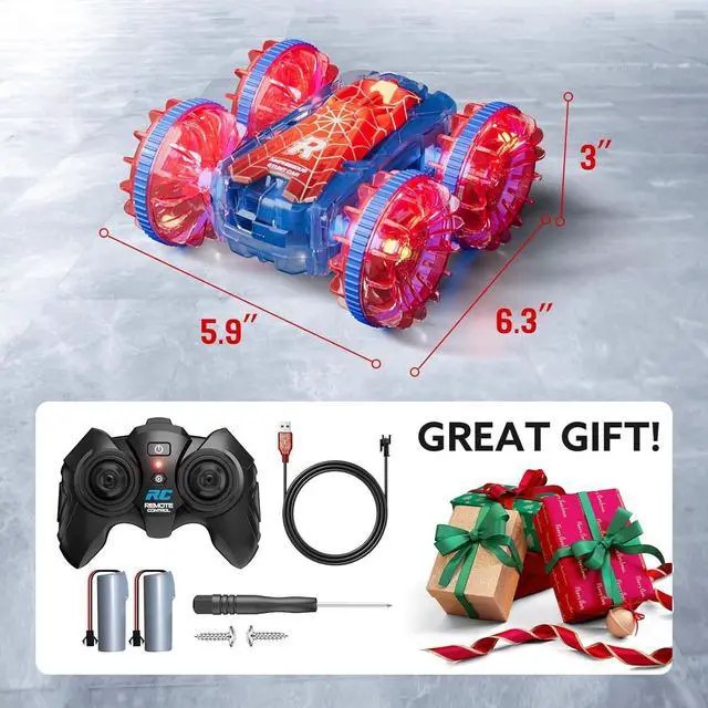 Get Fun with the 4WD Stunt Car--This 4 wheels drive remote control car are very responsive for moving and turning. Besides, the car provides strong power for effortlessly performing of 360°Rotation and180°Flip. Those tricks are popular among young children. Your boys/girls will love the features.