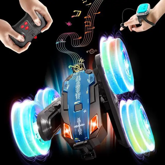 2.4GH z Stunt Car with 2 Control ModesThis stunt car is equipped with a handle remote control and watch sensing remote control, and the remote control uses 2.4GH z transmission technology to ensure long pairing distance and multiple toy cars are not disturbed, with a control distance of up to 40 meters. Gesture control is also very interesting. Rc cars can be driven and changed according to your gestures, and when you master it, you will have endless fun.