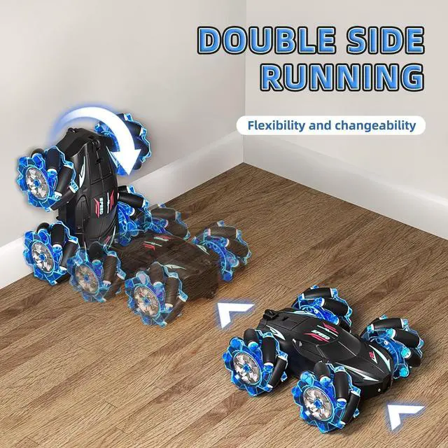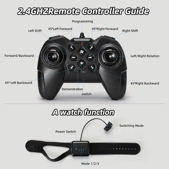 Multiple Ways to Play The remote control adopts 2.4GH z transmission technology, which is sensitive to control and ultra-long-distance control. Yet another amazing remote control watch. Wear the watch on your hand, tilt the angle <90°, the gesture remote control car can sensitively sense your posture changes, and drive and change at will.