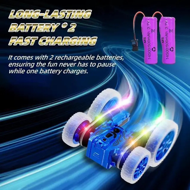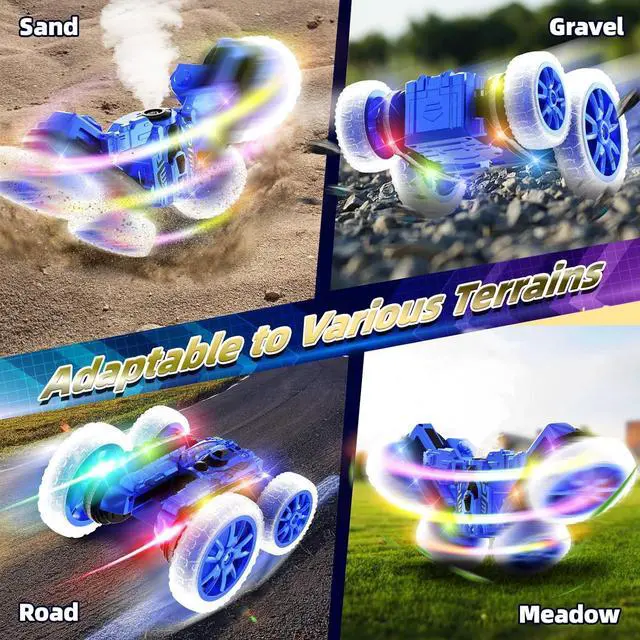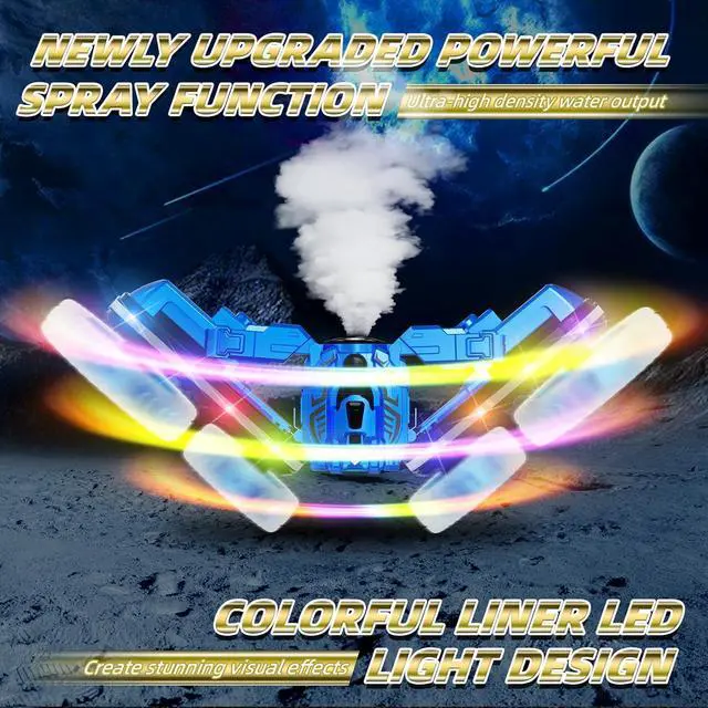 Spray Function & Colorful Linear LightThe newly upgraded spray function boasts a larger capacity, fuller coverage, and a longer range. The unique, cool linear light design makes your car the most eye-catching presence at night. The spray and lights can emit colorful sprays, providing you with a fun experience unlike other stunt cars.