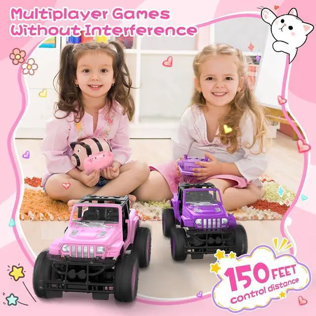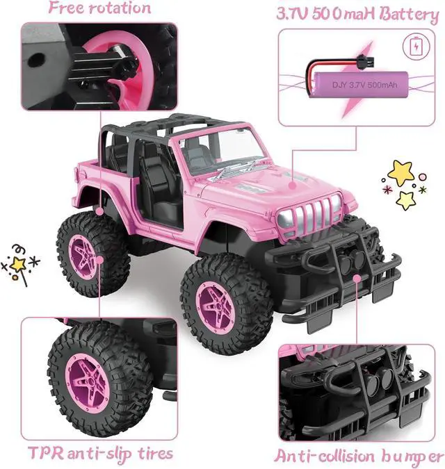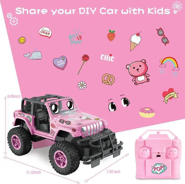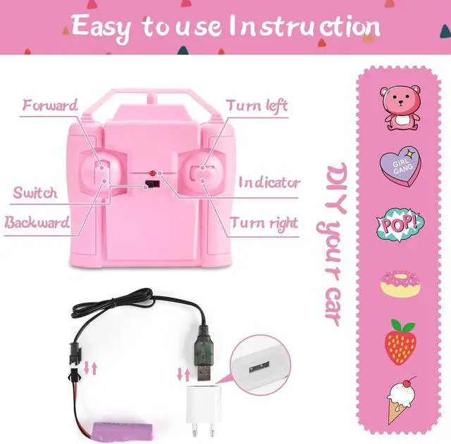 Rechargeable Eye-catching Design: Our innovative pink shell design with stickers allows your kids to customize their own RC car, providing an unparalleled experience. Equipped with a 500mAh rechargeable battery, no need to change the battery frequently