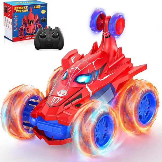 Spider RC Cars: Our spider remote control car adopts a unique shape and vibrant colors that easy to attract kids attention, it can make 360 degrees fast rotate and 90 degrees upright driving stunts, also equipped with colorful wheel lights that bring extra thrilling racing experience for your boys, perfect spider toys for 3-5 4-6 7 8 year olds boys girls toddlers