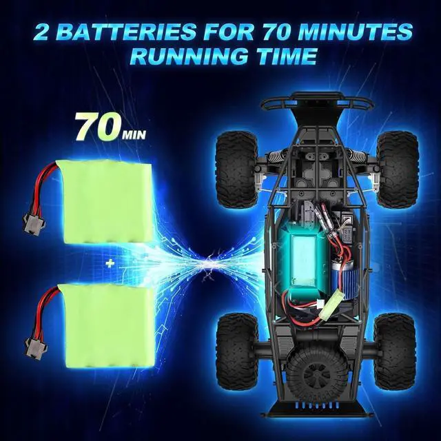 Suitable for various terrains: Whether it' s a sandy beach, land, mud, wetlands, grassland, rocks, rugged mountain roads, or even driveways, streets, yards, stairs, and wood chips in the park. Powerful electric motor and flexible handling system ensure that the toy car performs well on all terrains