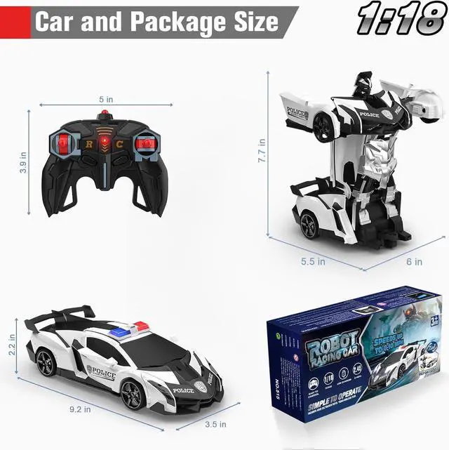 • 2.4Ghz Remote Control: 2.4Ghz Powerful Transform system supports multiple cars racing at the same time without interference. Just press the demo button, 360 degree turning flexibly in both robot model and car shape, it will show you a wonderful performance.