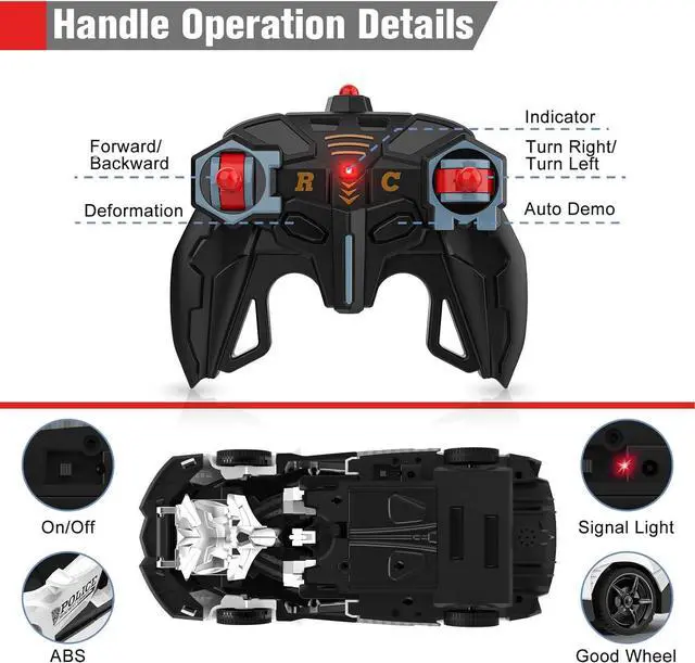 • Intelligent RC Cars with 360° Rotation for Boys: 2 Option for Transform. It can transform automatically from car to robot when you press the button on the controller. Transforms back and forth so easily and quite awesome.