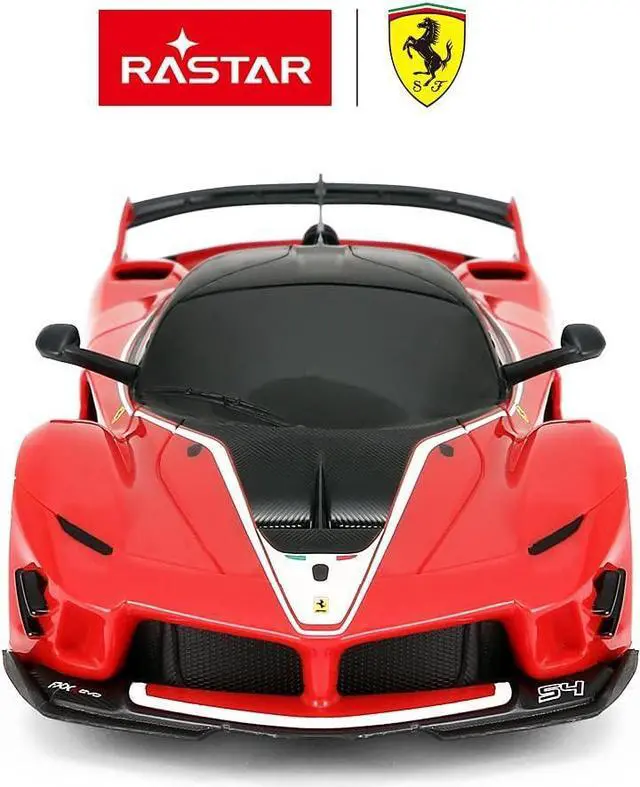 FULLY FUNCTIONAL RASTAR RC CAR - Features a delicate and smooth profile and a remote controller with functions such as forward, reverse, left and right turns; Easy to control and the Ferrari rc car responds well. Ferrari Fxx-K model car simulates a really powerful engine as one can expects from a famous car. The simple dual-grip remote control and a max speed of 4 miles per hour are fun to play with.