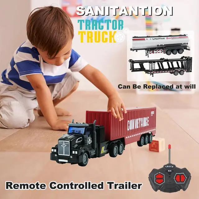 Container Trucks: A front with three tails can simulate three types of cars including car carriers, tank trucks and container cars, providing a variety of fun for your children to have a variety of fun.