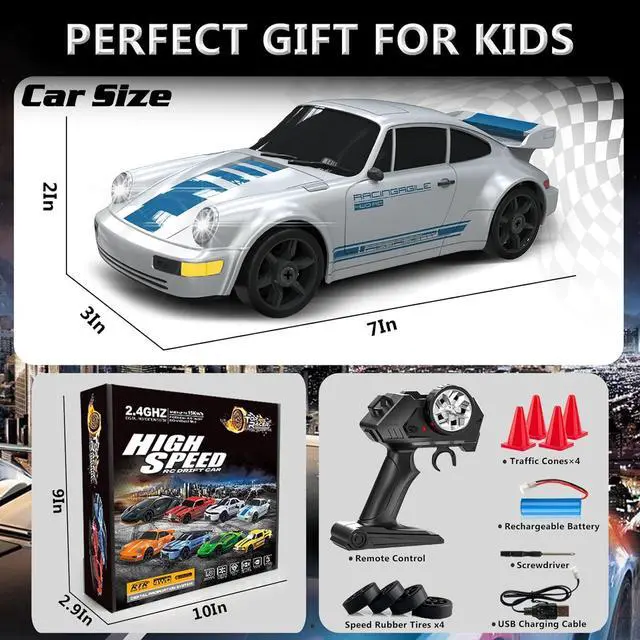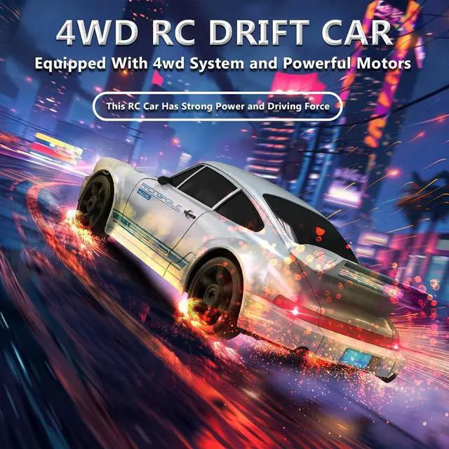 4WD Drive System: Drift rc car using four wheel drive system design, powerful motor to provide maximum traction, drift race car can easily conquer various extreme conditions, in the race and drift to provide excellent road performance, so that adults and kids feel different fun