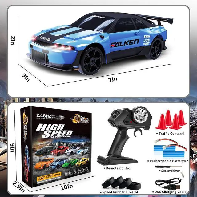 THE BEST GIFT: Cool LED Light remote control car, you can not only play the drifting car with the remote control, but also put it on the display shelf as an exhibit. Remote control cars can exercise children' s handling skills, as well as hand-eye coordination, which is a perfect christmas birthday holiday gift for boys, girls and adults