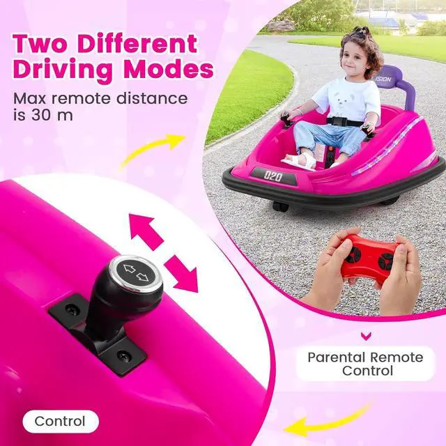 Two Control Mode: This kids electric bumper car can be operated by children through the handles. It also has a parental control mode by using the included 2.4GH z remote if kids are too young