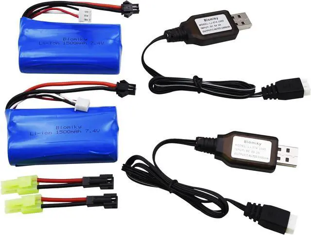 7.4V 2S 1500mAh Li-ion battery suitable for Compatible with only a few kind of Remote Control Trucks, which battery size, voltage and plug all match. 7.4V 1500mAh Li-ion battery suitable for Powerextra 1:16 scale RC Trucks, which use same mini tamiya plug 2S 1500mAh Li-ion battery.
