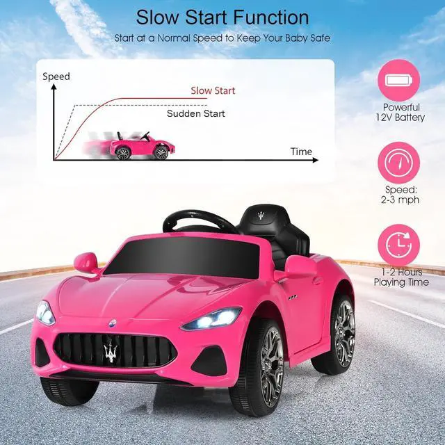 Licensed Maserati Gran Cabrio: This licensed Maserati ride on car comes with realistic Gran Cabrio design, which featuring with decor elements, removable windows, headlights, a steering wheel and foot pedal.