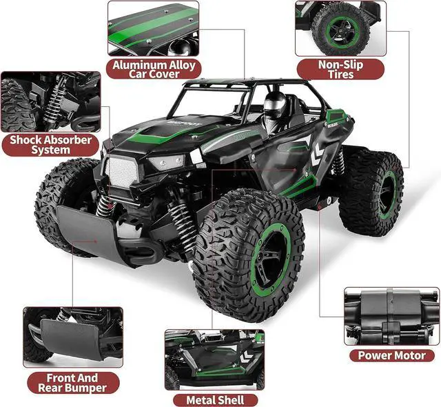 NO DELAY RTR REMOTE CONTROLLER The easy-to-use non-interference remote controller of 2.4GH z frequency makes the car always ready to run and has a non-jamming function. The radio control distance is about 50 meters, it is an excellent off-road monster truck in both indoor and outdoor.