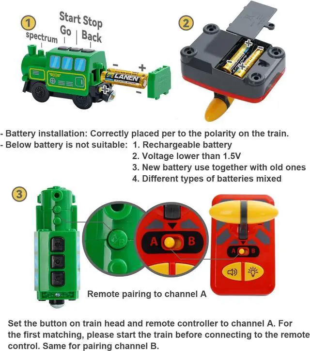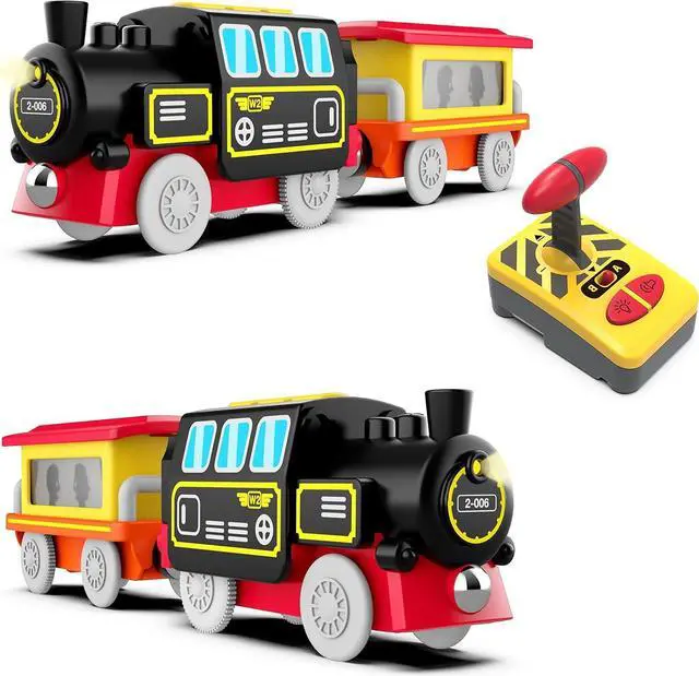 Retro steam train toy come with retro appearance, black locomotive train head, magnetic connected with carriage and equipped with remote control. AA&AAA batteries are required (Not included).
