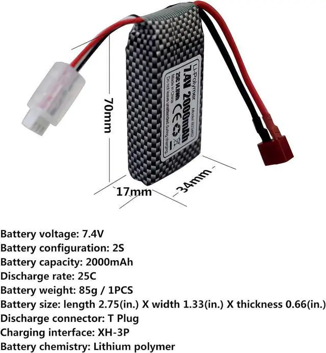 Package Content: 2PCS 7.4V 2000mAh Lithium Battery.