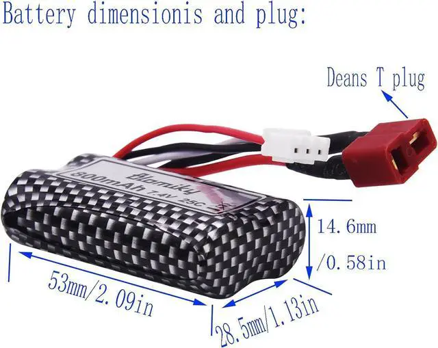 Part number: TR-DG02, Deans T Connector Plug. Real capacity 650mAh--850mAh 2S, 7.4V 25C Li-ion Rechargeable Battery.