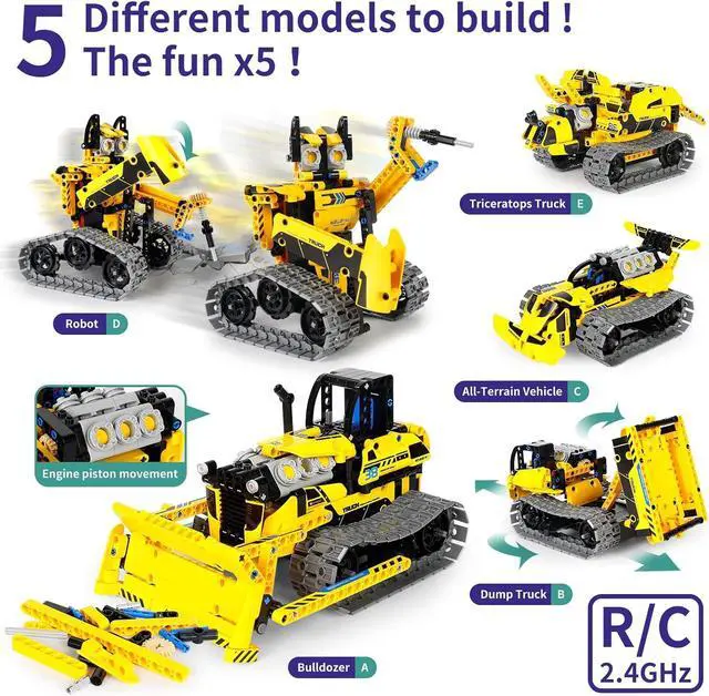 Versatile 5 in 1 Building FunExplore endless possibilities with this STEM robotics kit that transforms into five exciting models - bulldozer, robot, dump truck, all-terrain vehicle and triceratops truck. Sparking imagination and creativity, erector set offers a diverse range of building experiences for kids