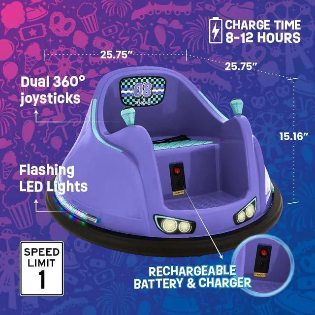 BUMP: Electric toddler bumper car lets them race, chase, spin and bump. Colorful flashing LED lights glow brightly to give that amazing arcade feel. Create unforgettable memories that will last a lifetime
