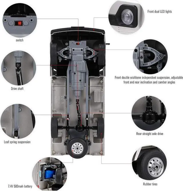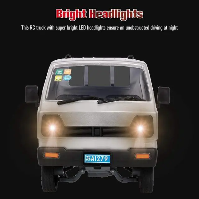 Middle engine Rear drive: Has excellent steering characteristics, good starting and acceleration performance. When turning the steering wheel, the car quickly follows the steering. This RC truck with super bright LED headlights ensure an unobstructed driving at night.