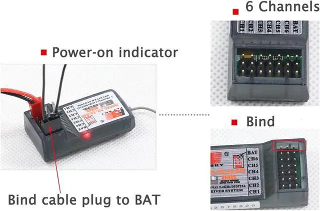 [What you get ] 1 X FS FS-R6B 2.4G 6 Channel Receiver; 1X Bind Cable