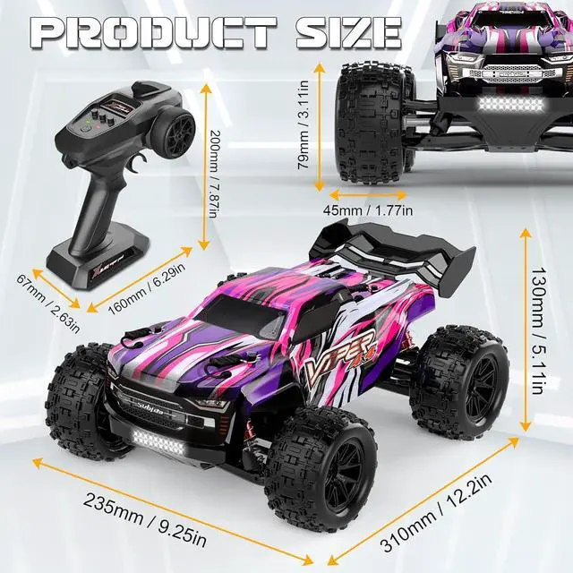 Off-Road Dominance: Equipped with two sets of terrain tires, our brushless remote control car delivers exceptional control on all terrain surfaces, including tracks, trails, muddy venues, skateboard parks, snow, grass, and sand. Whether you' re racing or bashing, our car is ready to tackle any challenge.