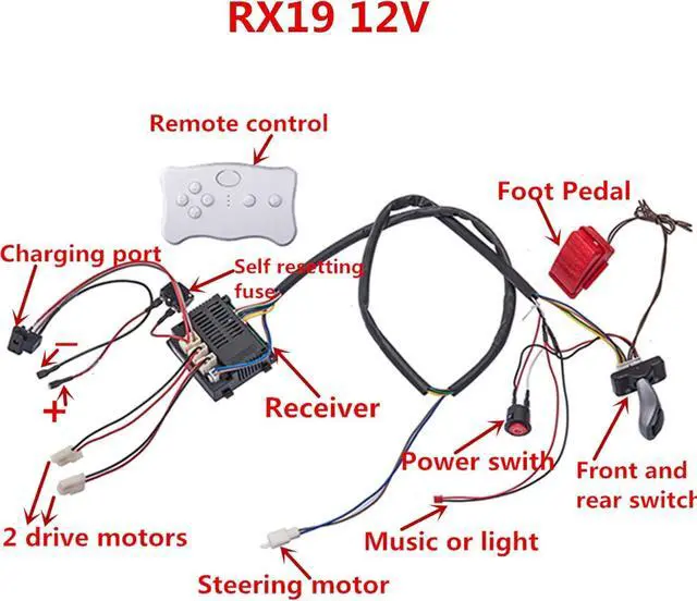 Complete Set of Accessories: 2.4G Remete Control, Control Box ( Circuit Board ), Wires, Switch, Pedal, Overload Protector