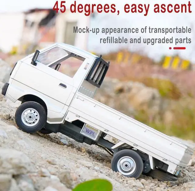 Full scale servo/ESC controlCut the handle slowly according to the amount and speed of operation of the transmitter, and cut it off quickly, the acceleration operation will be the same, from fast running to full acceleration, as you wish. It is similar details as the realist rc car WPL product style, realistic appearance, and powerful two-wheel drive specifications.