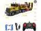 [Playing with Construction Vehicles]--This 1:24 scale remote control truck measures 27 inches in length and comes with an inertia loader. It has the capability to drag various types of vehicles, such as cars, excavators, fire trucks, bulldozers, and dump trucks. This versatility allows for imaginative play and creates endless possibilities for kids to explore different construction scenarios.