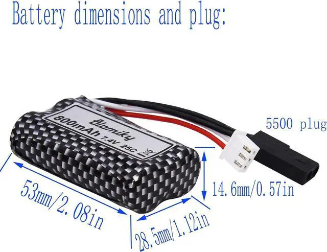 5500 Battery connector plug. 7.4 v 2S 800mAh rechargeable battery fit for 1:16 Scale Blomiky and Xinlehong 9130 9135 9136 9137 9138 9145 RC Truck and RC Cars