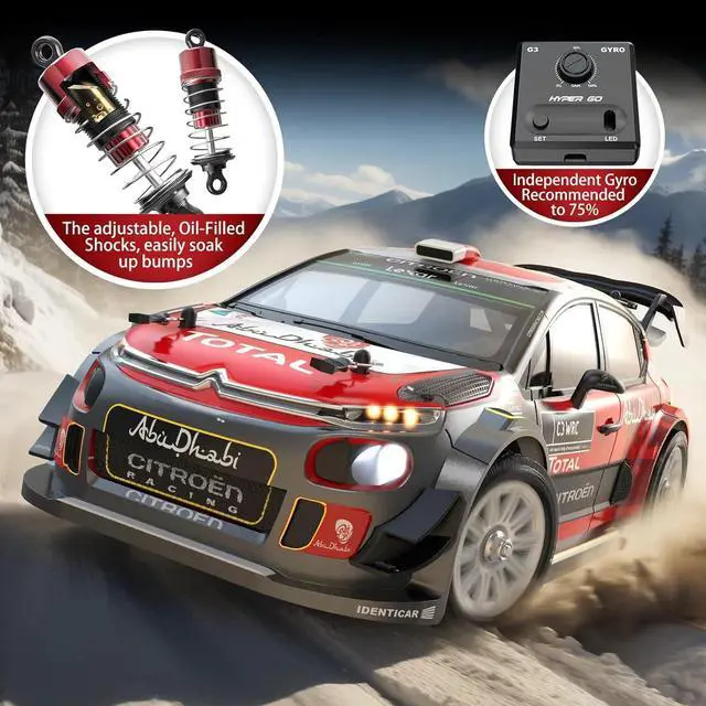 Citroën License: A perfect replica of the 2017 Citroen C3 WRC in 1/14 scale, we have added many details such as bumpers, wide body spoiler, air intakes, exhaust, spoiler and more. In terms of appearance, it is a great car enthusiast gift