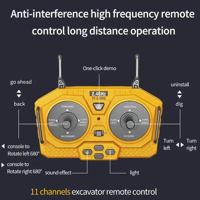 Additionally, it features one-key programming, allowing you to easily set and replay actions, as well as an automatic demonstration mode, which shows off the bulldozers impressive capabilities. Whether you are navigating tight spaces or performing complex tasks, this model offers a perfect balance of performance, control, and fun.