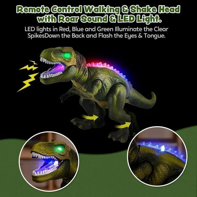 Kids will have endless fun controlling this roaring light up dinosaur.