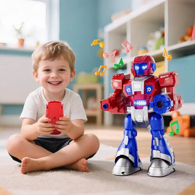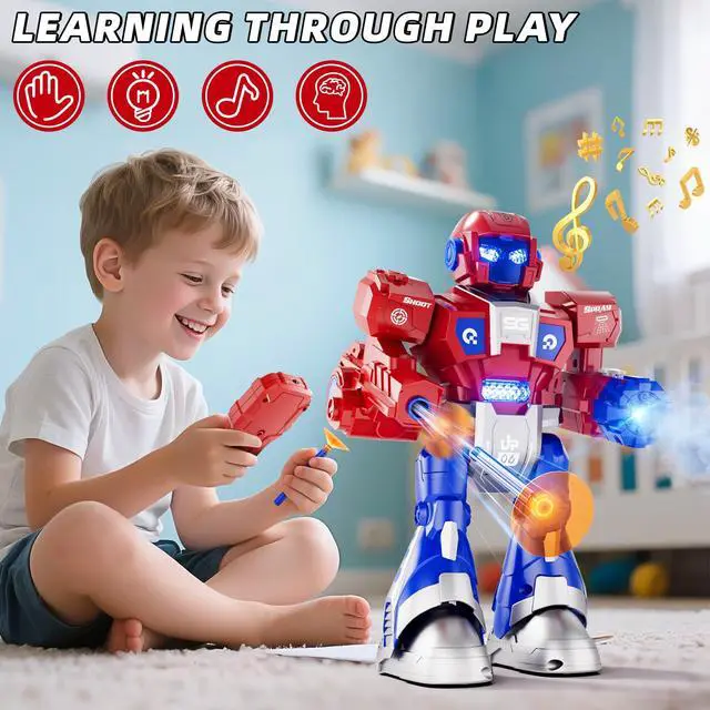 Multifunctional Robot Toys - The robot toys for kids all functions are control by the remote. Your kids can use the remote control to control the robot move forward/backward, turn right/left, and also 360° Rotation, accompanied by music and lights. Your 3 year old boy can also operate the rc robot toys easily, and older kids can master the program function which can let the robot follow your instructions. The robot toys and the remote control requires total 5x1.5V 'AA' (NOT INCLUDED).