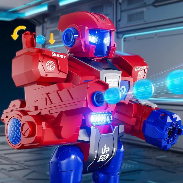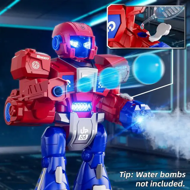 Music, Dancing, Spraying and Shooting Function - The super cool robot toys not only can play different music and dance to the music, but also create smoke and shoot. Just add water to the robot's left shoulder and press the smoke button to release smoke. The shooting function allows you to shoot suction cup or water bombs. Shoot suction cup needs to be added from the right side of the rc robot and the water bomb needs to be added from the right shoulder of the robot.(water bombs not included).