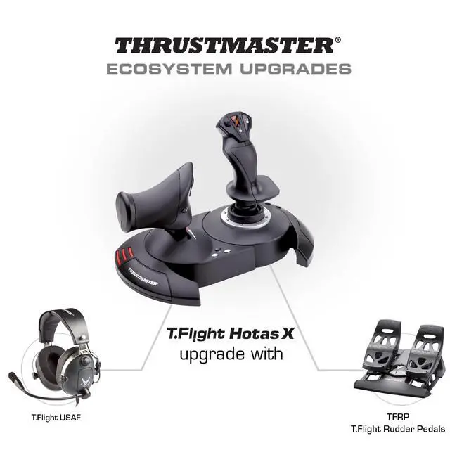 Trigger for brakes (civil flight) or for rapid fire (military flight) + multi-directional hat (panoramic view)