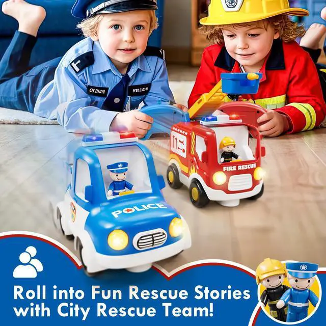Remote Control Car for Toddlers, Fire Trucks for Toddlers 3-5, Remote Control Police Car Toy with Sounds & Lights, Toys for 3+ Year Old Boys, Gifts for 3 4 5 Year Old Boys Girls