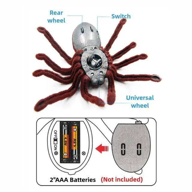 The spider features a universal wheel mechanism, allowing you to use the remote control to direct it to your desired location.