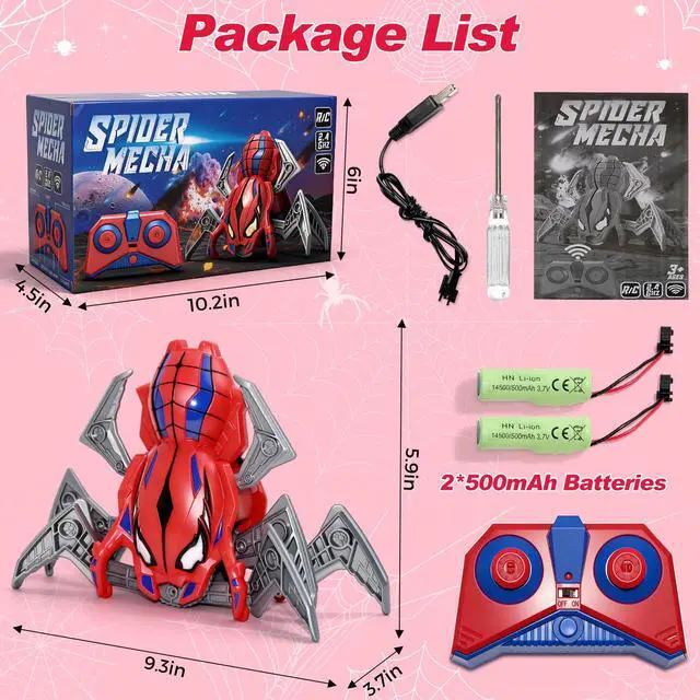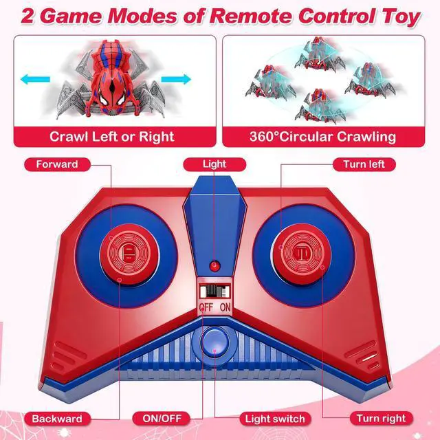 • Cool Mech Design: The angular cutting of the head of this remote control toy and the segmented leg structure are all simulating the biological characteristics of spiders; The luminous design of the eyes further strengthens the sci-fi sense of "mechanical creatures", making the toys more aggressive and interesting.