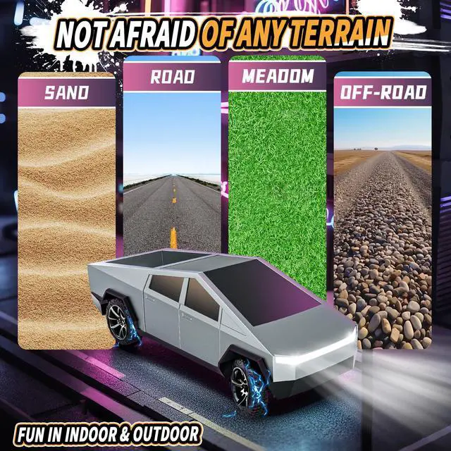 All-Terrain RC Truck: Splashproof and waterproof electronics and all-terrain off-road tyres with unique tread design provide excellent grip for this truck toy to easily navigate a variety of terrains, no need to worry about driving this RC truck on grass, sand and bumpy ground
