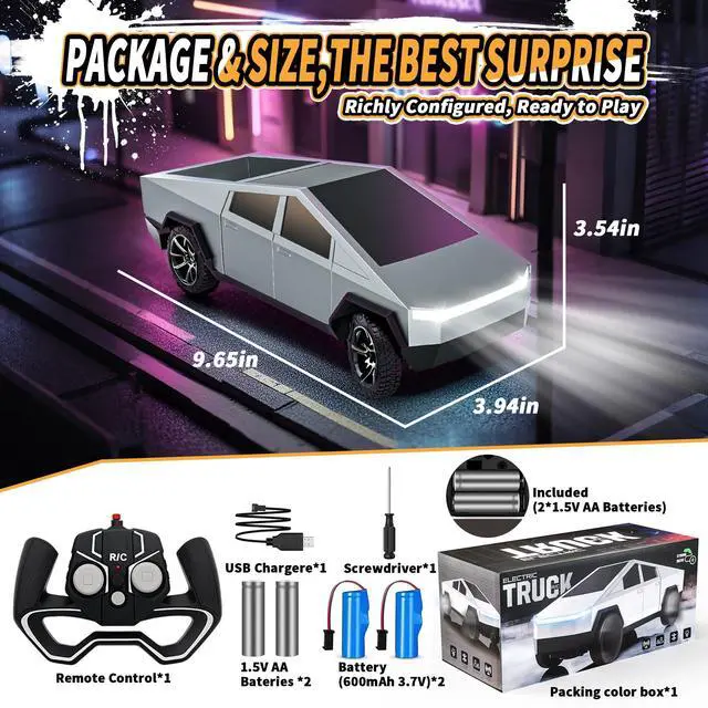Future Technology, Perfect Reproduction: Our truck RC toy car perfectly replicates the charm of truck, with a flexible and durable PVC body with ABS interior and high-grip tyres for a techno-tough style. Every detail is futuristic, the perfect combination of technology and entertainment, whether it is a children's toy shelf or an adult collection cabinet, can become the focus