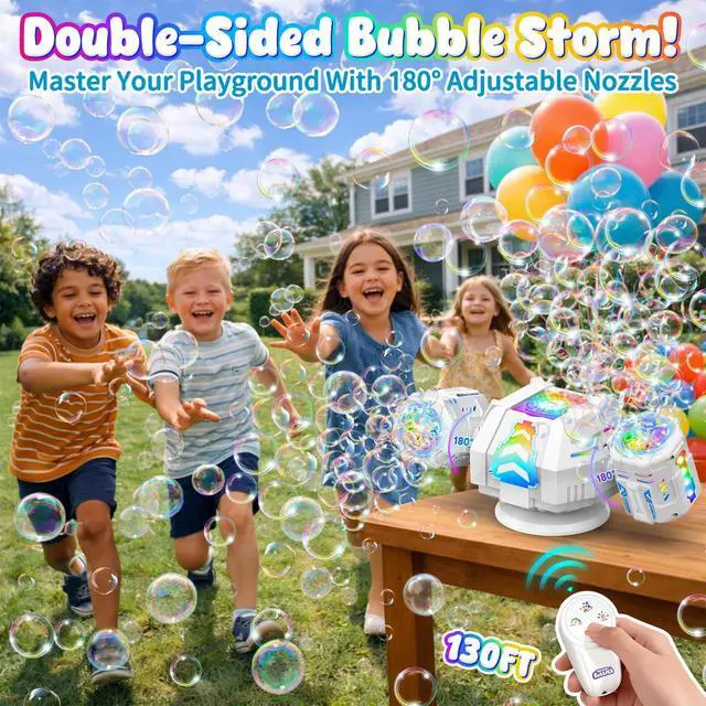 Be the Life of the Party from Anywhere: With a long-range remote control up to 130 ft, this high capacity bubble machine for parties auto-pairs with the remote on startup, making it easy for kids and adults to use. The remote has 4 multi-function keys and supports long-distance control, making outdoor bubble machine perfect for parties, camping, pool sides, and more. Dual operation modes (remote+on-device button) ensure full flexibilityso even if the remote isn't nearby, you can still enjoy nonstop bubble fun