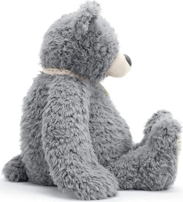 More than the average teddy bear, this friendly companion measures 37 inches at full height; Lightly stuffed to form his floppy body; Gray fur, curious ears, and button-like eyes