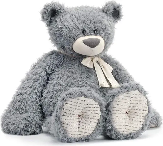 In order to maintain its hug ability, stuffed animal should be spot cleaned only. Soft touchable fabrics lend soothing comfort and love; Script print that read, "forever and always, " on the bottom of bears floppy feet