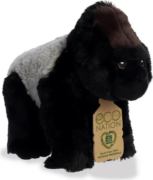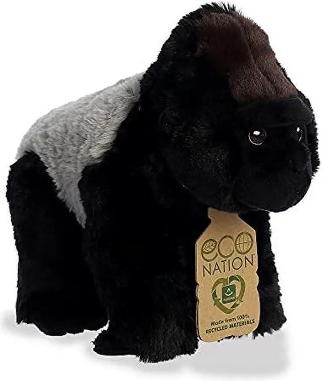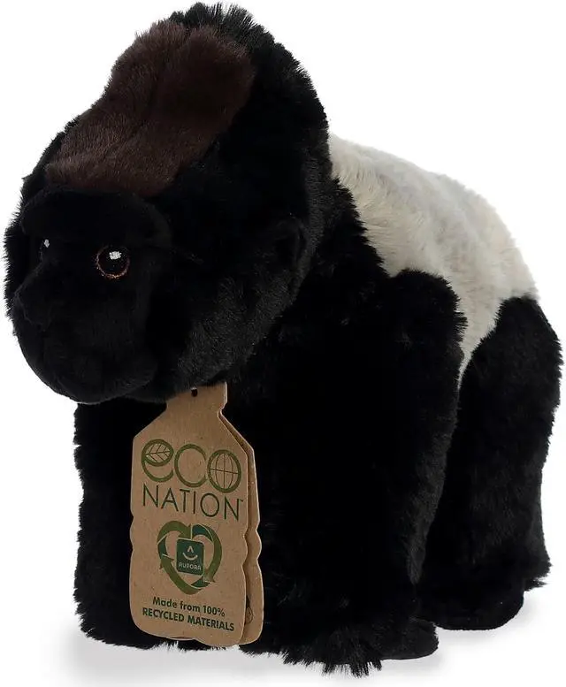 Sporting sleek black fur and an iconic silver back, this Silverback Gorilla Plush from Aurora's Eco-Nation collection captures the majesty of its wild counterparts while feeling impossibly softalmost like hugging a cloud. The plush fabric is made from 100% recycled plastic bottles, exemplifying leadership in sustainability. Detailed embroidered eyes add lifelike charm without the environmental cost of plastic, elevating this plushie from a mere cuddle buddy to a true ambassador of eco-awareness. Whether you're looking for an impactful gift or a cuddly companion that resonates with both kids and adults, this Silverback Gorilla plush is a perfect statement for the planet and partner for life.
