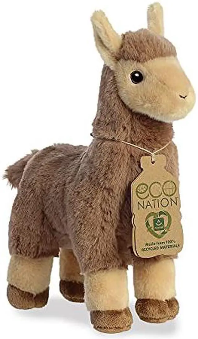 Snuggle up with this Tan Llama plush, a socially responsible yet irresistibly cozy member of Aurora's Eco-Nation collection. Flaunting a rich tan coat and embroidered eyes that add both charm and eco-friendliness, this llama is designed to win hearts while taking care of Mother Earth. Its fabric is made entirely from recycled plastic bottles, making each hug an eco-friendly embrace. Ideal for gift-giving occasions like birthdays and anniversaries, or just to brighten someone's day, this Tan Llama also serves as an excellent educational tool, offering a furry and fun way to introduce children to the concepts of recycling and environmental responsibility.